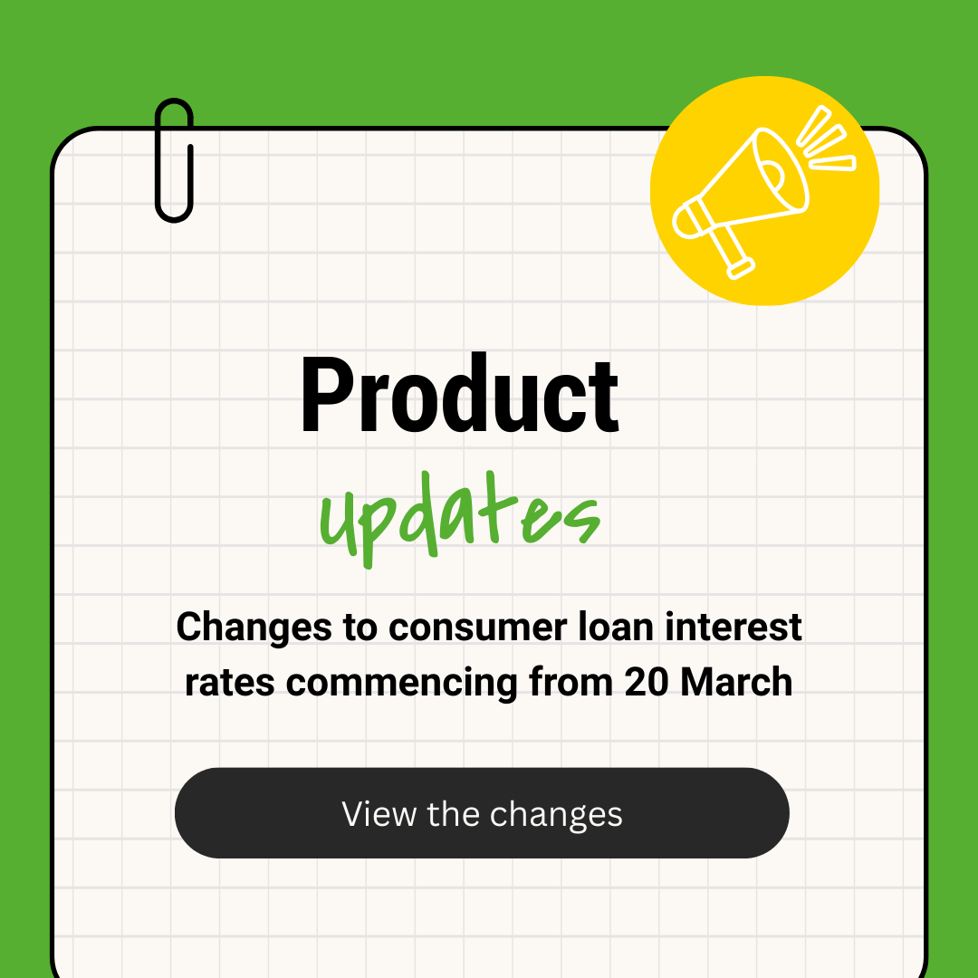From 20 March 2026, consumer loan interest rates will increase by 0.25%p.a. with Green and Home Improvement loans to increase by 1.00%p.a. View the bulletin for more information including effective dates.