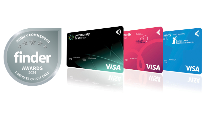 The Community First Low Rate Credit Card has been named Highly Commended in the Best Low Rate Credit Card category of the 2024 Finder Credit Card Awards.