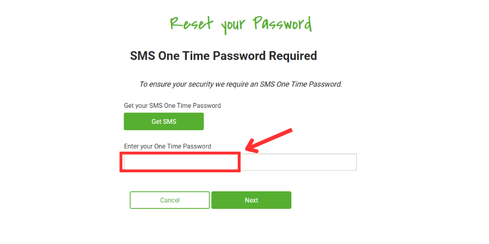 Request to get the ‘SMS One Time Password’ sent to your mobile phone and enter it into this box.